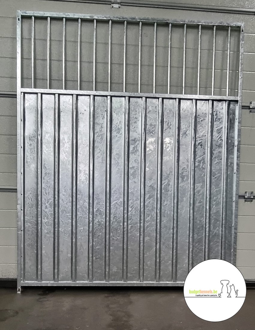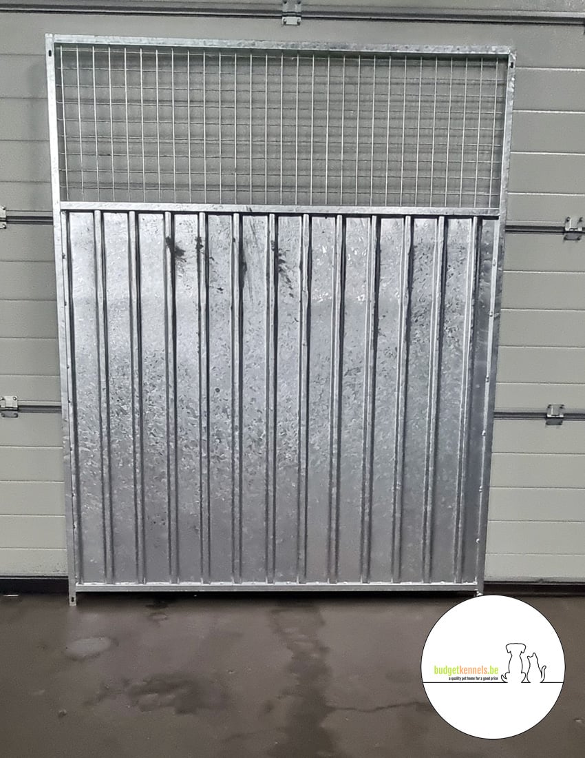 De standaard eco kennelpanelen hebben een hoogte van 184 cm, standaardvoetje is 5 cm van de grond.