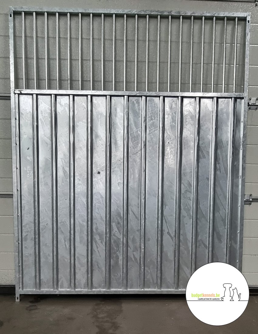 De standaard eco kennelpanelen hebben een hoogte van 184 cm, standaardvoetje is 5 cm van de grond.